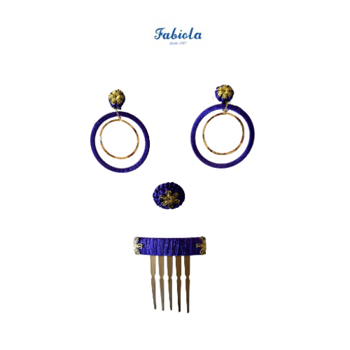 Conjunto de pendientes, peinecillo y alfiler de Fabiola1987 modelo Doble Aro color morado. Realizado exclusivamente para Fabiola1987 por manos artesanas de Sevilla. Hecho en España. El material es hilo trabajado a mano y metal.