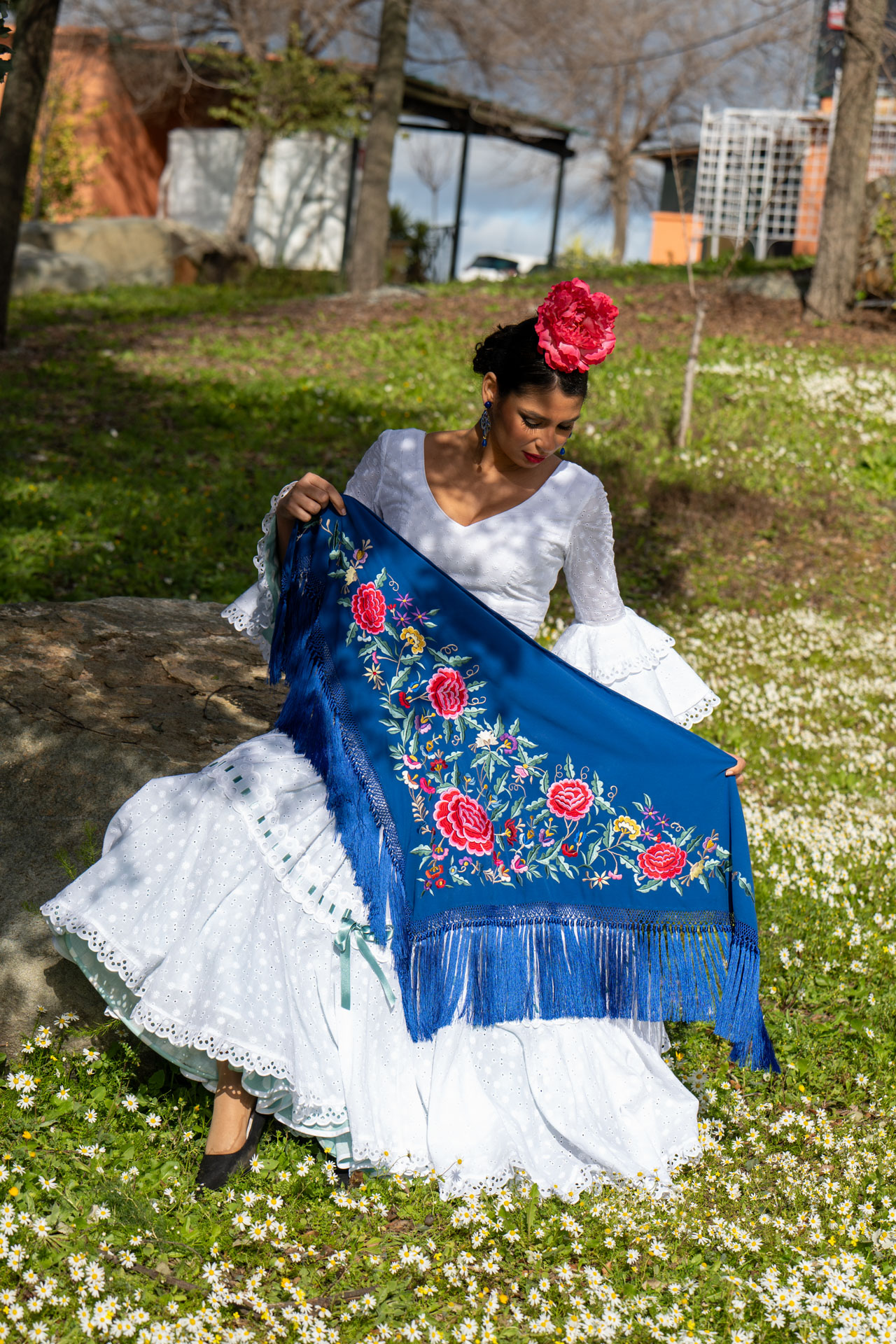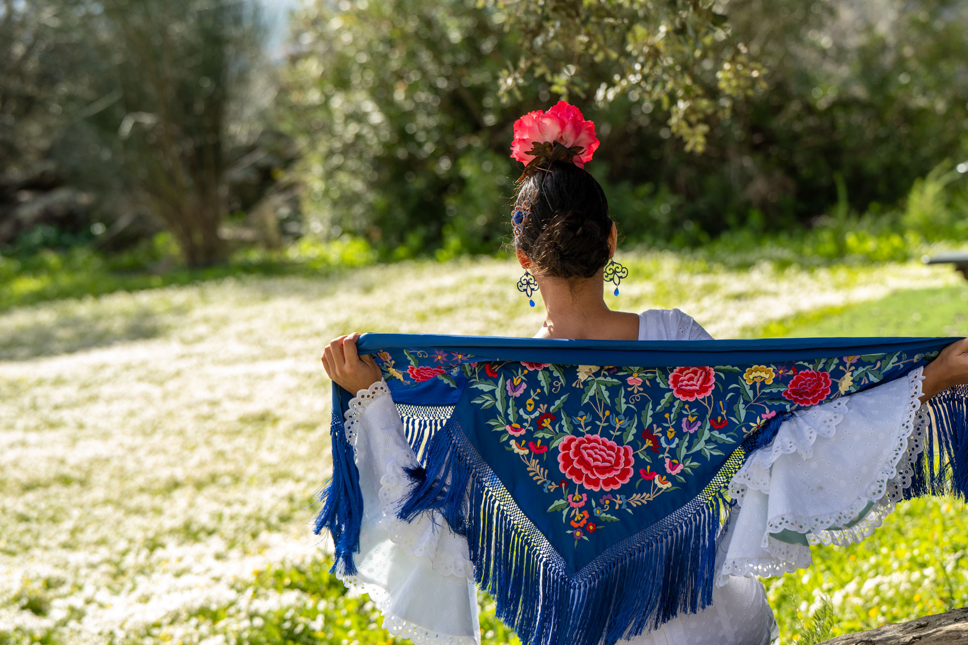 Precioso Mantoncillo de Fabiola1987 Colección Rosas fondo azul intenso bordado en colores. Tejido crespón de alta calidad. Enrejado a mano. Bordado en Sevilla «a bastidor «en máquina, al estilo tradicional. Bordado lento y detallado, uno a uno. Colección exclusiva de Fabiola1987.#Hecho en España. Edición limitada. Cómodo y ligero. Fácil de llevar. Para lucir aportando valor a tu traje de flamenca. También para llevar en eventos y looks veraniegos.